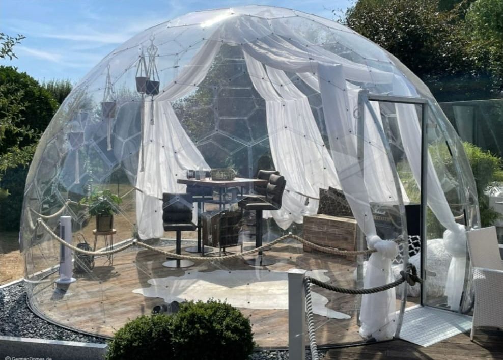 Diese Domkugel bietet mehr Raum für vielseitige Nutzung und eignet sich hervorragend für Freizeit, temporäre Räume oder besondere Gartenlösungen.
