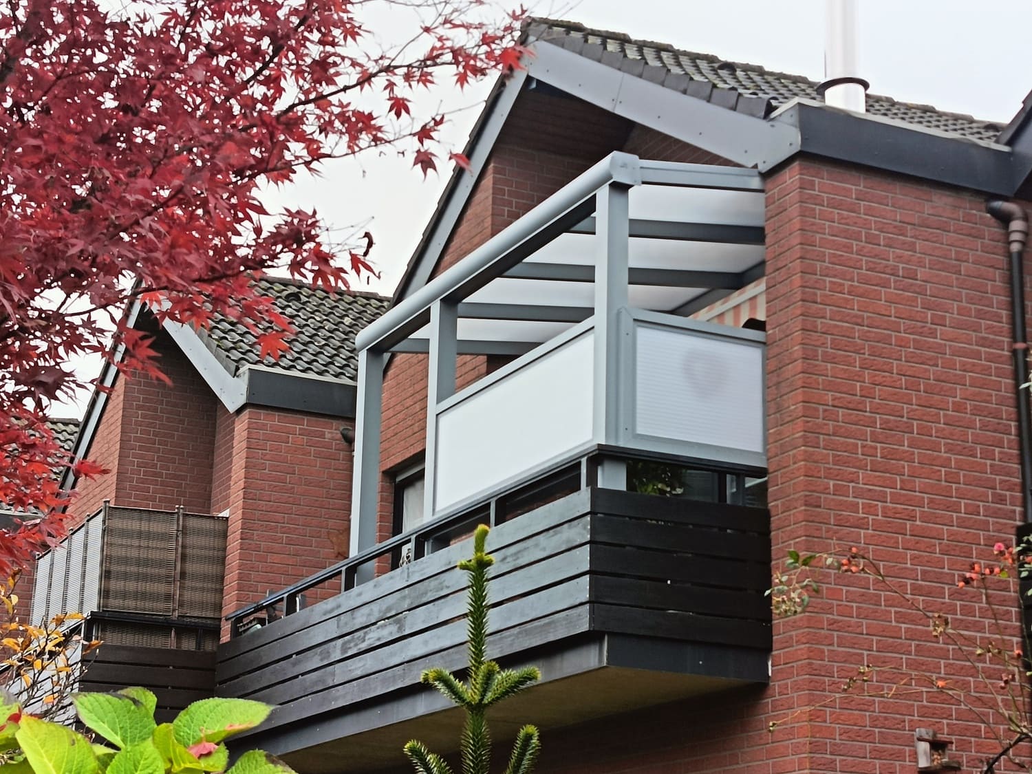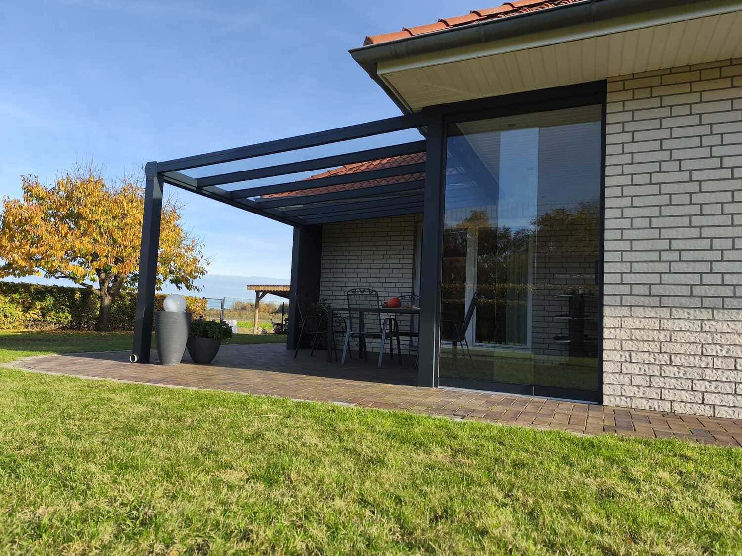 Wir verwenden ausschließlich langlebige Aluminiumprofile (T6-6063), kombiniert mit Verbundsicherheitsglas (VSG) oder Einscheibensicherheitsglas (ESG). Bei festen Seitenelementen können Sie zwischen Glas, Polycarbonat und Aluminium wählen.